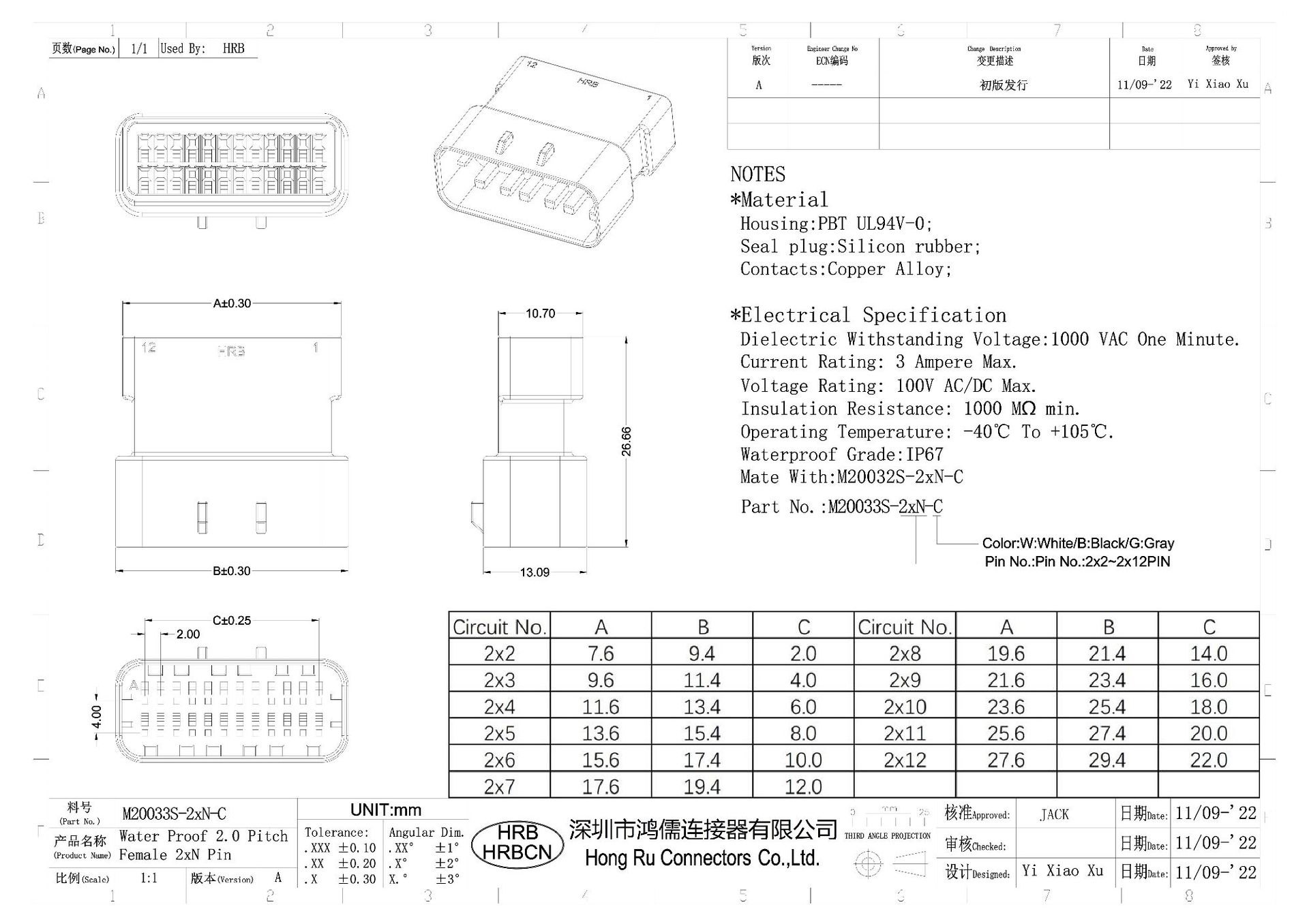 9)端子适用性:AWG#26-22(绝缘O.D.1.4-1.7mm)